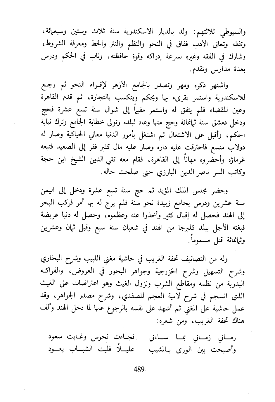 والسيوطي ثلاثتهم: ولد بالديار الاسكندرية سنة ثلاث وستين وسبعمائة، وتفقه وتعاني الأدب ففاق في النحو والنظم والنثر والخط ومعرفة الشروط، وشارك في الفقه وغيره بسرعة إدراكه وقوة حافظته، وناب في الحكم ودرس بعدة مدارس وتقدم.