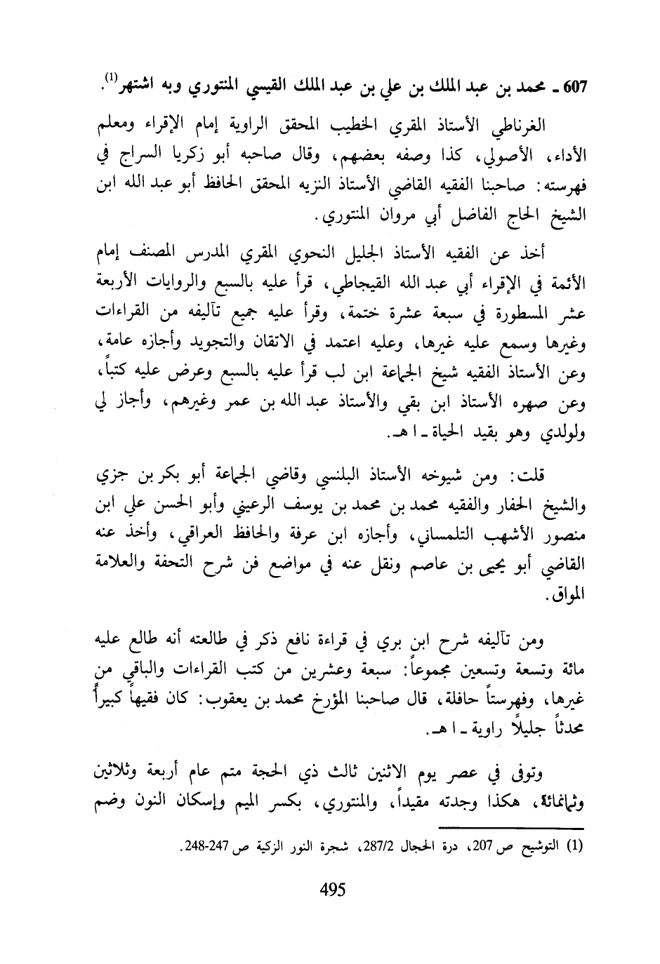 (¬1) التوشيح ص 207، درة الحجال 2/ 287، شجرة النور الزكية ص 247 - 248.