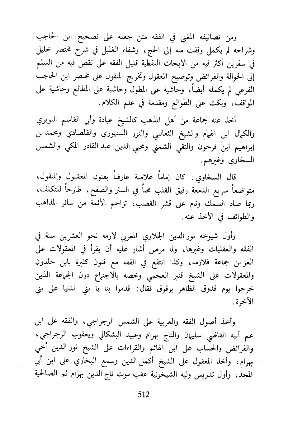 وأخذ أصول الفقه والعربية على الشمس الرجراجي، والفقه على ابن عم أبيه القاضي سليمان والتاج بهرام وعبيد البشكالي ويعقوب الرجراجي، والفرائض والحساب على ابن الهائم والقراءات على الشيخ نور الدين أخي بهرام، وأخذ المعقول على الشيخ أكمل الدين وسمع البخاري على ابن أبي المجد، وأول تدريس وليه الشيخونية عقب موت تاج الدين بهرام ثم الصالحية