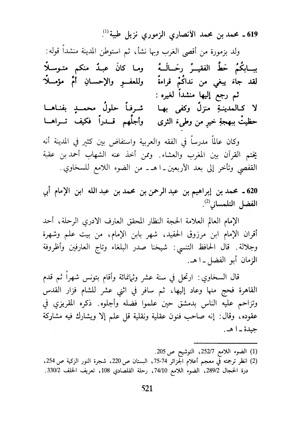 619 - محمد بن محمد الأنصاري الزموري نزيل طيبة (¬1).