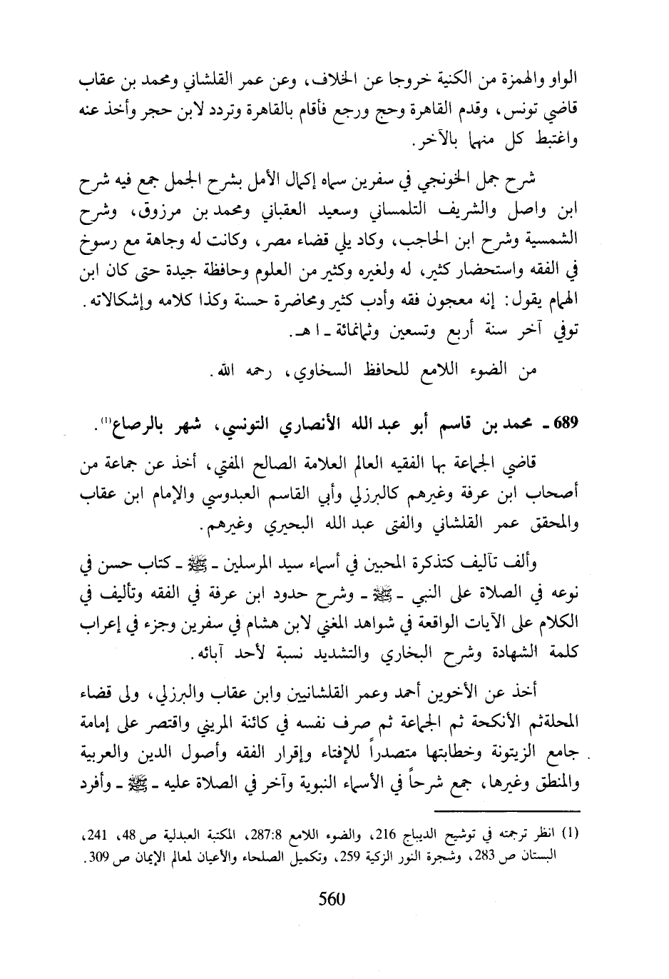 (¬1) انظر ترجمته في توشيح الديباج 216، والضوء اللامع 8: 287، المكتبة العبدلية ص 48، 241، البستان ص 283، وشجرة النور الزكية 259، وتكميل الصلحاء والأعيان لمعالم الإيمان ص 309.