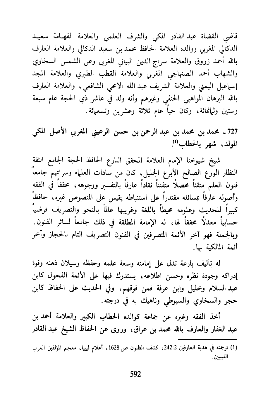 727 - محمد بن محمد بن عبد الرحمن بن حسن الرعيني المغربي الأصل المكي المولد، شهر بالحطاب (¬1).