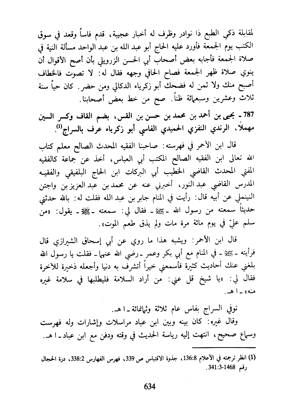 787 - يحيى بن أحمد بن محمد بن حسن بن القس، بضم القاف وكسر السين مهملًا، الرندي النفزي الحميدي الفاسي أبو زكرياء عرف بالسراج (¬1).
