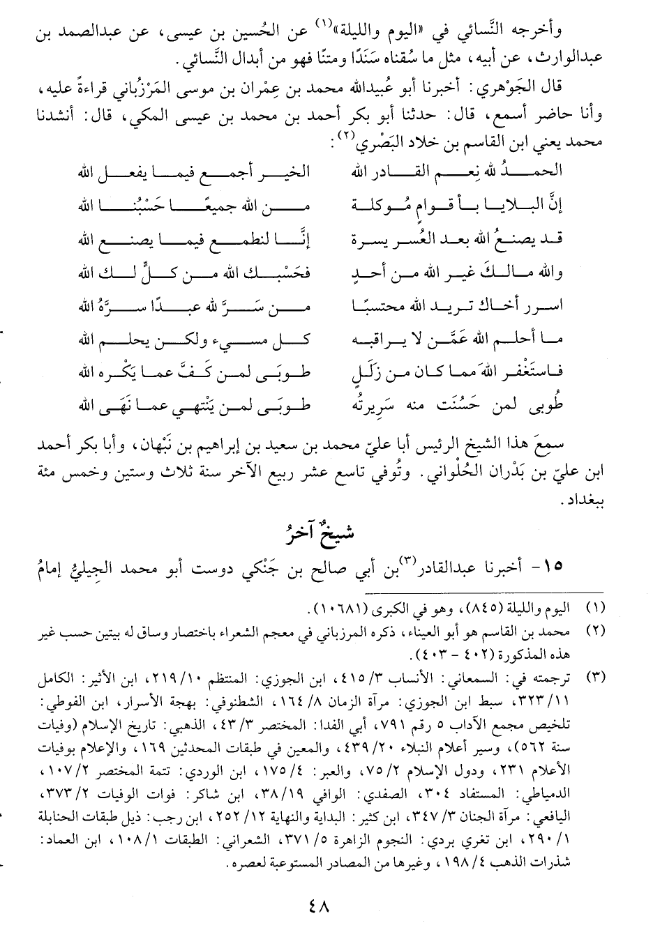 15 - أَخْبَرَنَا عَبْدُ الْقَادِرِ بْنُ أَبِي صَالِحِ بْنِ جَنْكِي دُوَسْتَ أَبُو مُحَمَّدٍ الْجِيلِيُّ، إِمَامُ