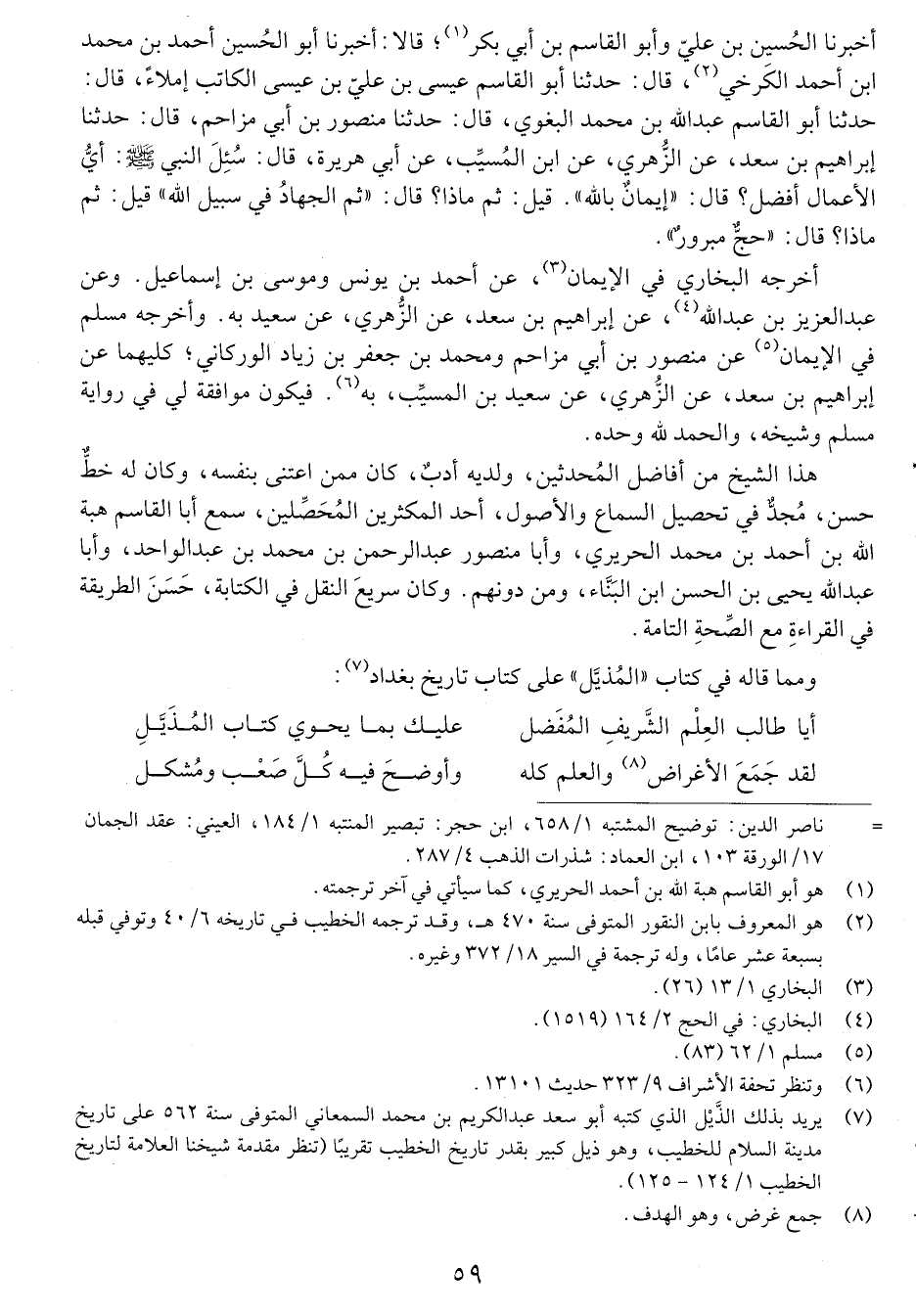 وَمِمَّا قَالَهُ فِي كِتَابِ (الْمُذَيَّلِ عَلَى كِتَابِ تَارِيخِ بَغْدَادَ) :