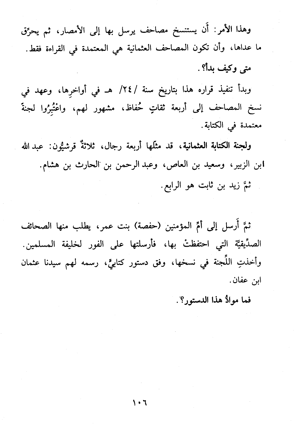 وأخذت اللّجنة في نسخها، وفق دستور كتابيّ، رسمه لهم سيدنا عثمان ابن عفان.