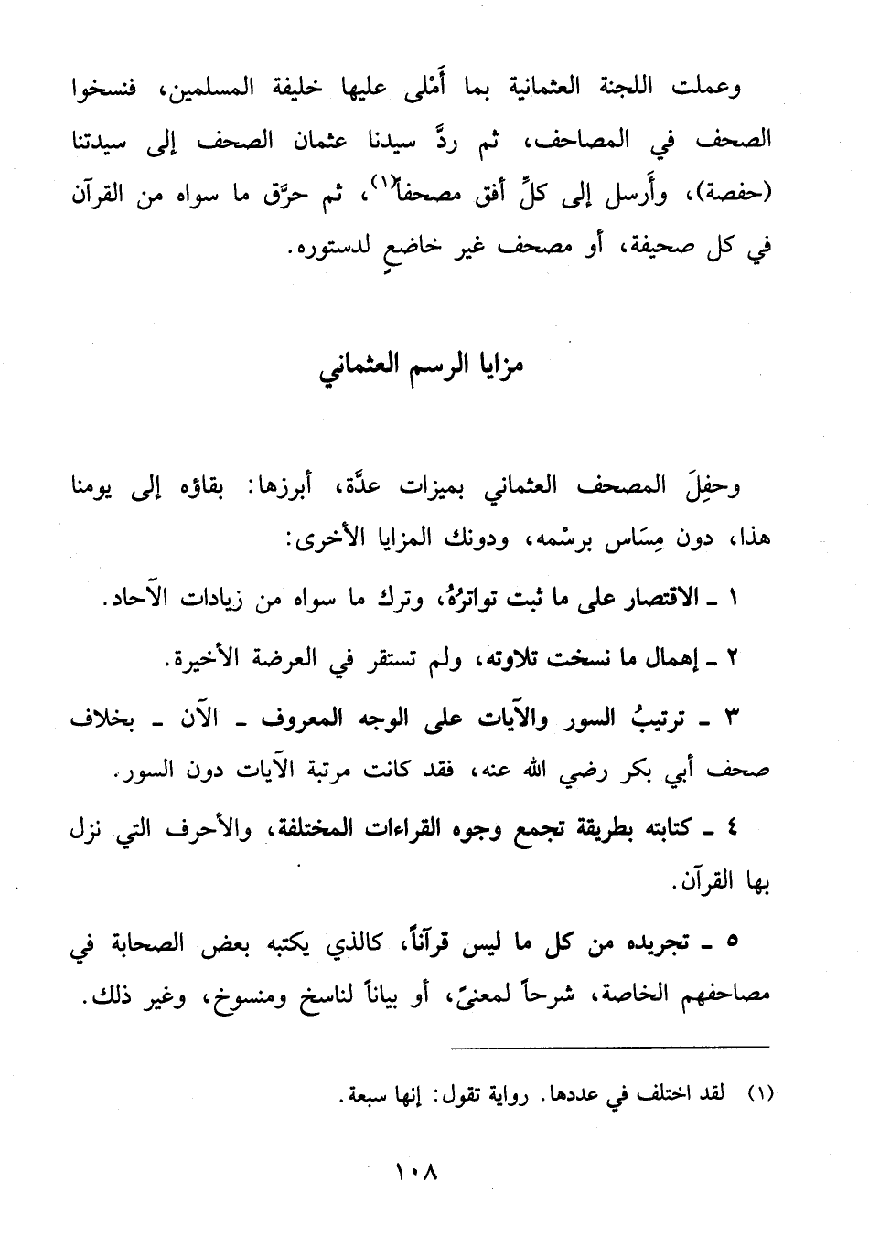 5 - تجريده من كل ما ليس قرآنا، كالذي يكتبه بعض الصحابة في مصاحفهم الخاصة، شرحا لمعنى، أو بيانا لناسخ ومنسوخ، وغير ذلك.