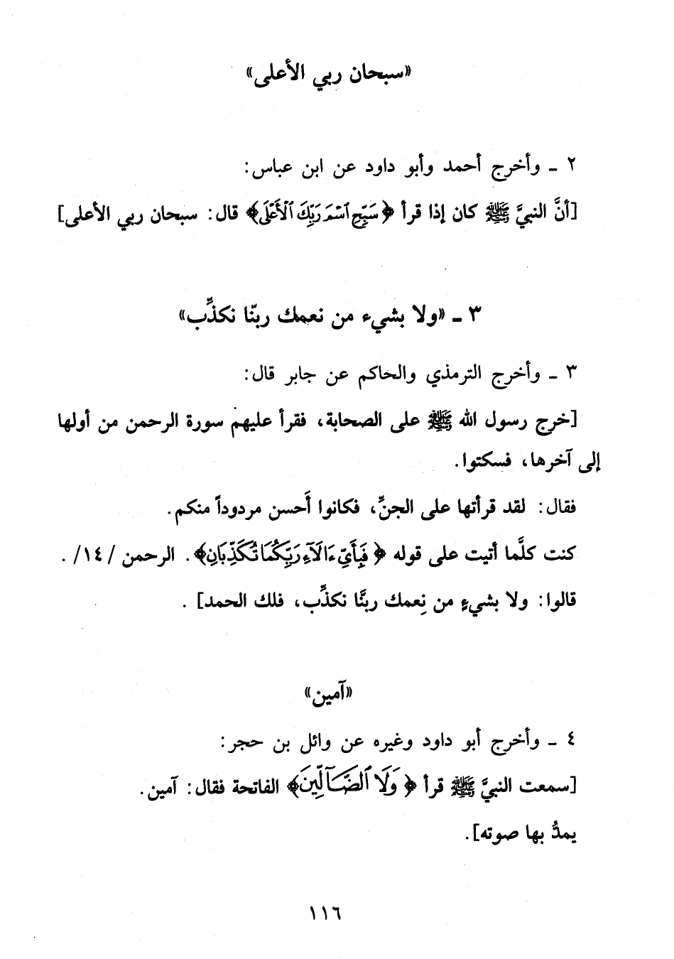[أنّ النبيّ صلى الله عليه وسلم كان إذا قرأ سَبِّحِ اسْمَ رَبِّكَ الْأَعْلَى قال: سبحان ربي الأعلى] 3 -
