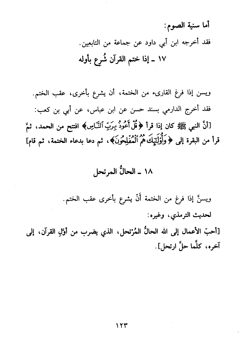 ويسن إذا فرغ القارئ من الختمة، أن يشرع بأخرى، عقب الختم.