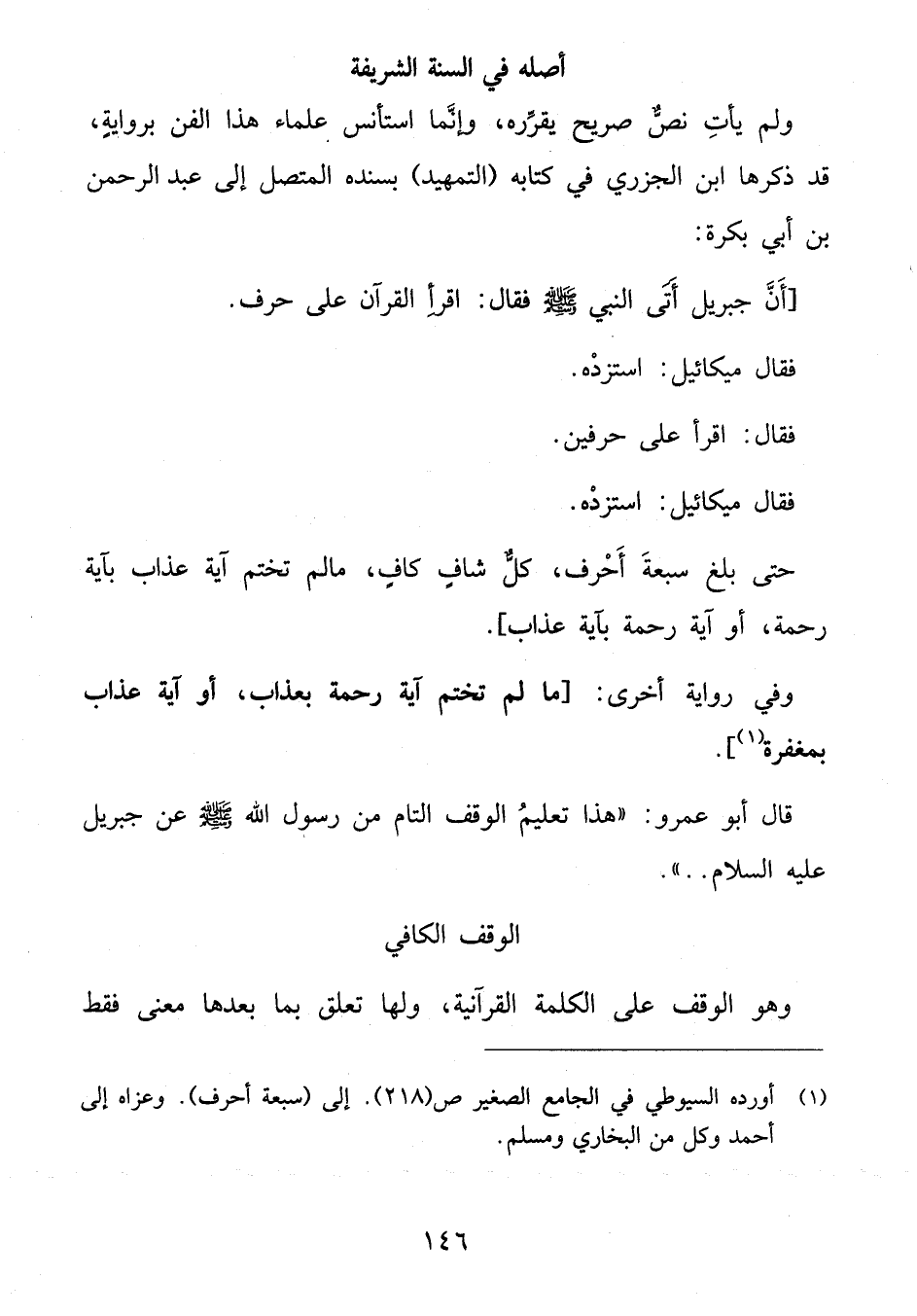 قال أبو عمرو: «هذا تعليم الوقف التام من رسول الله صلى الله عليه وسلم عن جبريل عليه السلام .. ».
