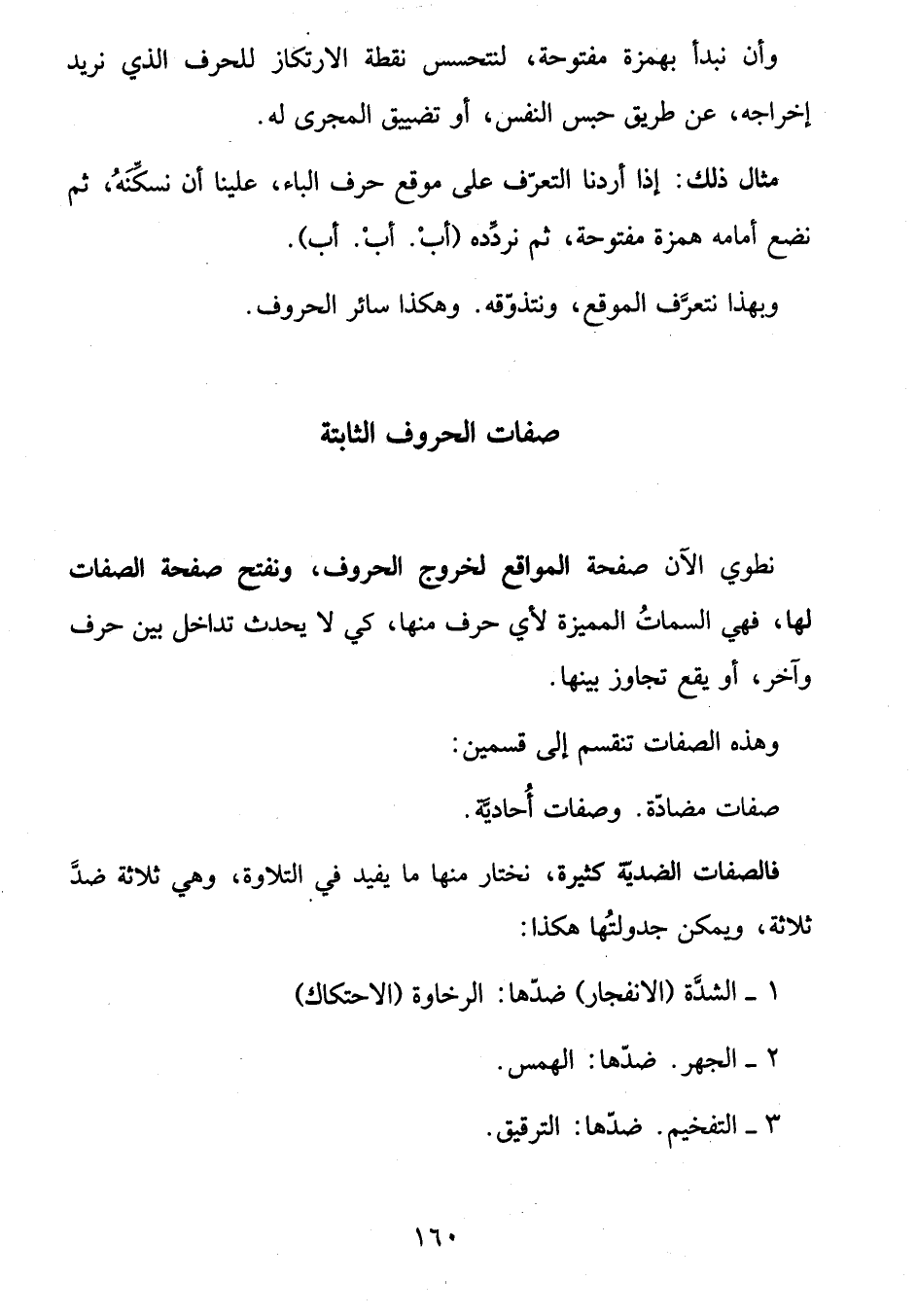 نطوي الآن صفحة المواقع لخروج الحروف، ونفتح صفحة الصفات لها، فهي السمات المميزة لأي حرف منها، كي لا يحدث تداخل بين حرف وآخر، أو يقع تجاوز بينها.