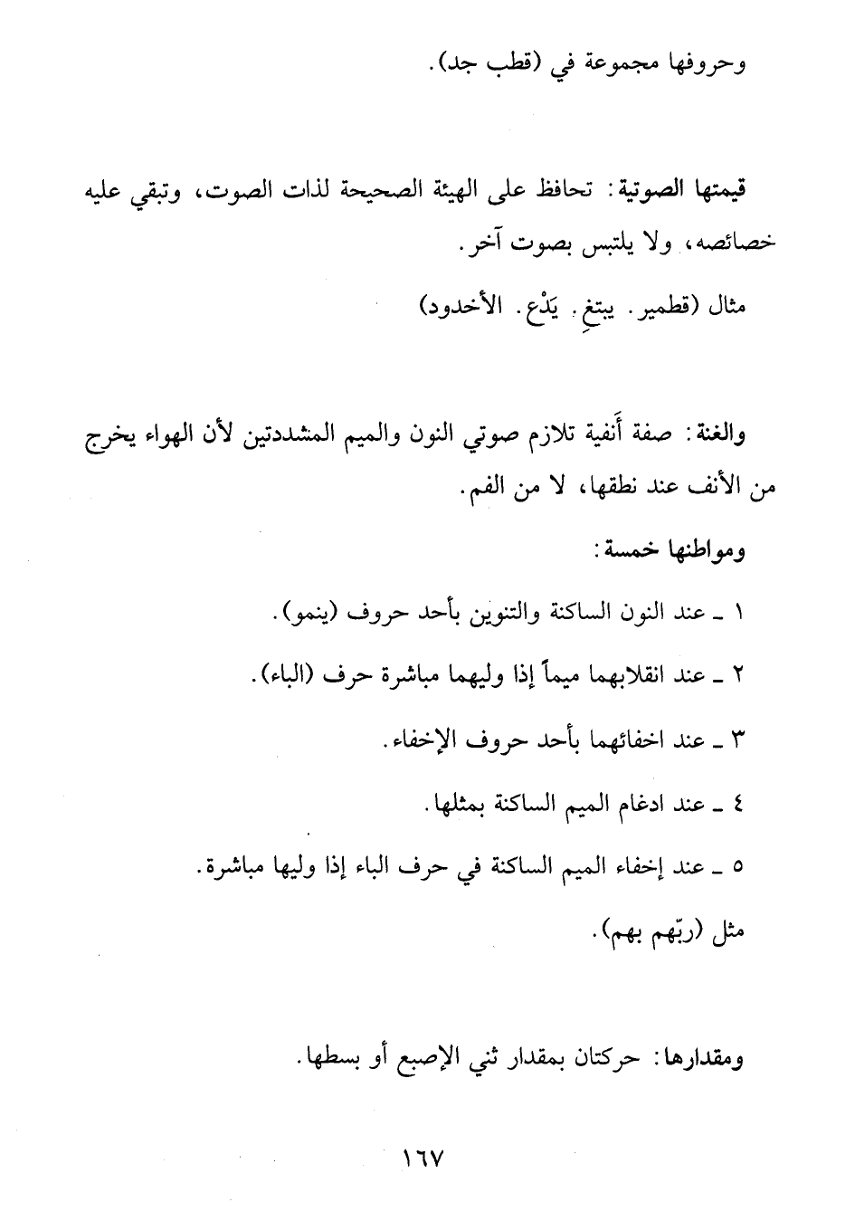 صفة أنفية تلازم صوتي النون والميم المشددتين لأن الهواء يخرج من الأنف عند نطقها، لا من الفم.