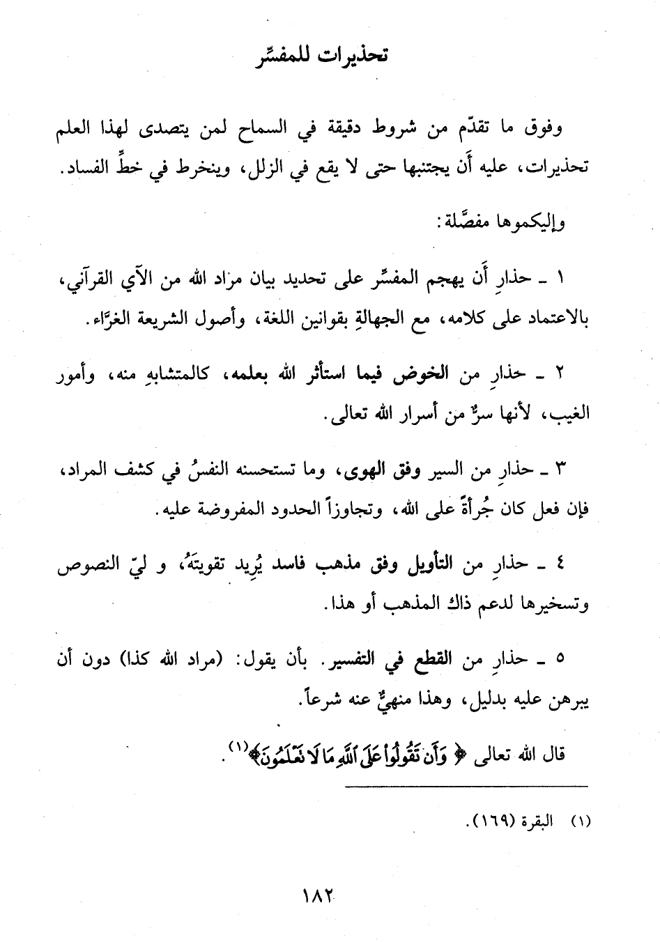 5 - حذار من القطع في التفسير. بأن يقول: (مراد الله كذا) دون أن يبرهن عليه بدليل، وهذا منهيّ عنه شرعا.