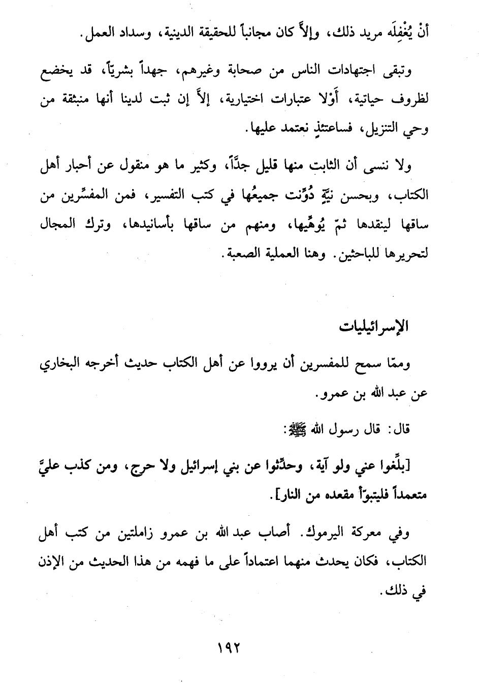 وممّا سمح للمفسرين أن يرووا عن أهل الكتاب حديث أخرجه البخاري عن عبد الله بن عمرو.