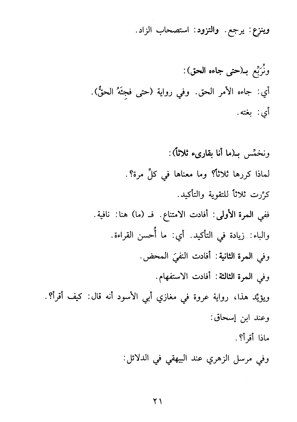 ونخمّس ب (ما أنا بقارئ ثلاثا):