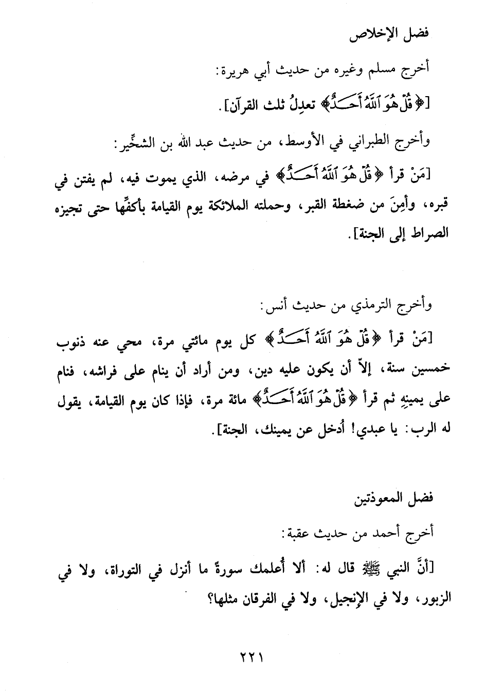 [قُلْ هُوَ اللَّهُ أَحَدٌ تعدل ثلث القرآن].
