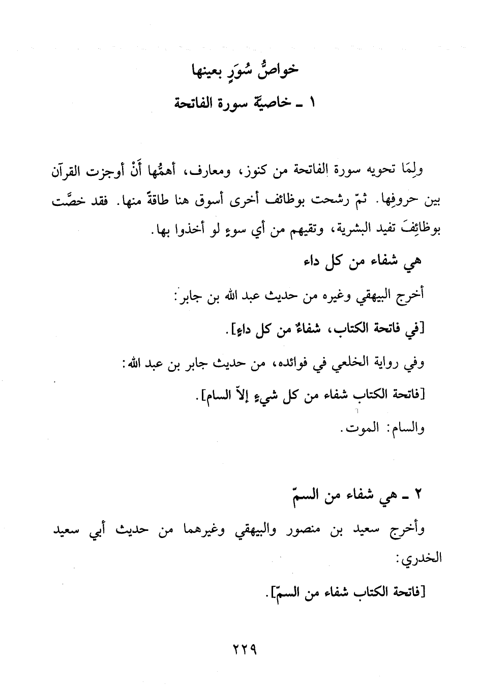 [فاتحة الكتاب شفاء من كل شيء إلّا السام].