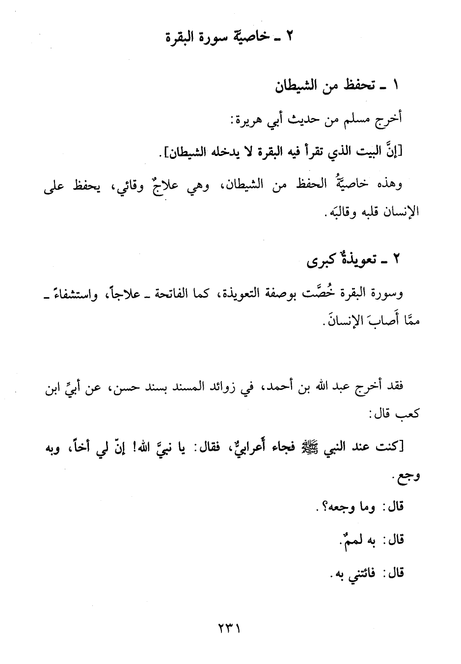 [إنّ البيت الذي تقرأ فيه البقرة لا يدخله الشيطان].