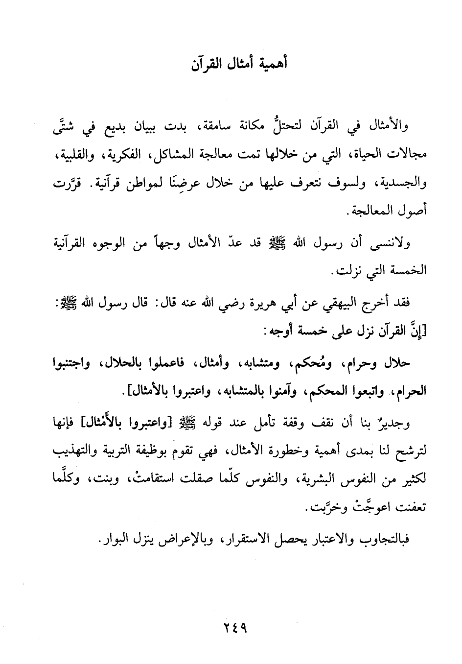 ولا ننسى أن رسول الله صلى الله عليه وسلم قد عدّ الأمثال وجها من الوجوه القرآنية الخمسة التي نزلت.