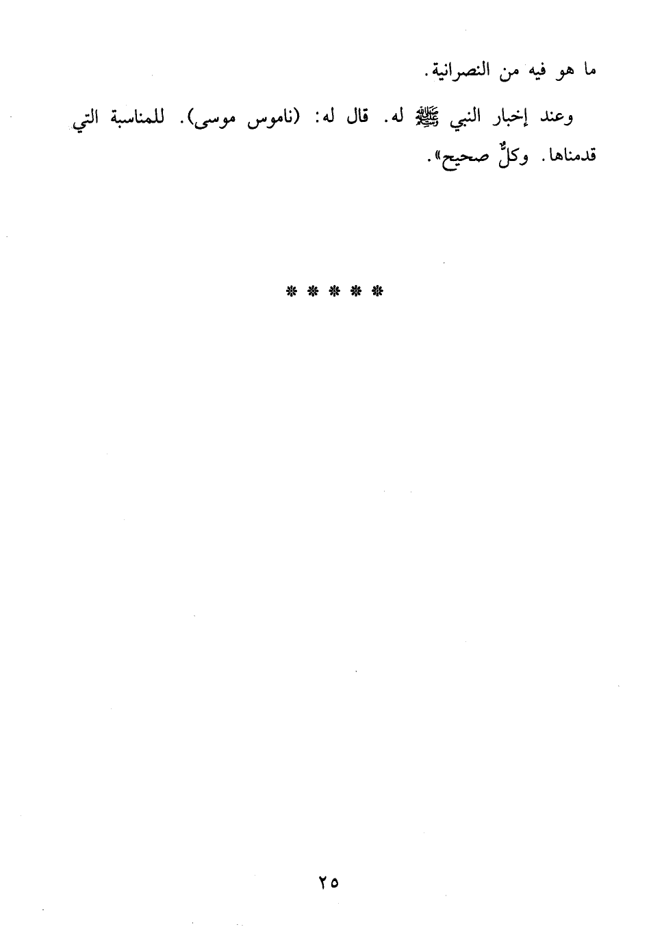 وعند إخبار النبي صلى الله عليه وسلم له. قال له: (ناموس موسى). للمناسبة التي قدمناها. وكلّ صحيح».