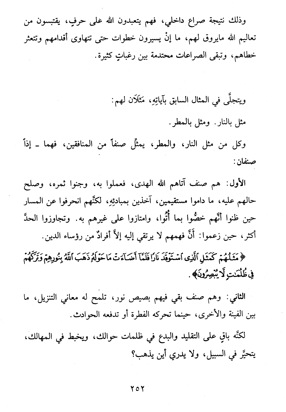 الثاني: وهم صنف بقي فيهم بصيص نور، تلمح له معاني التنزيل، ما بين الفينة والأخرى، حينما تحركه الفطرة أو تدفعه الحوادث.