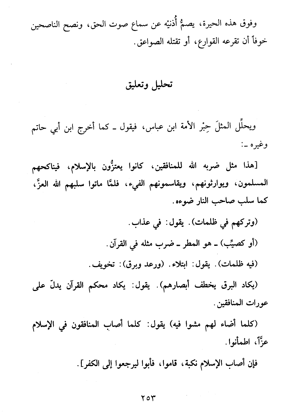 ويحلّل المثل حبر الأمة ابن عباس، فيقول- كما أخرج ابن أبي حاتم وغيره-: