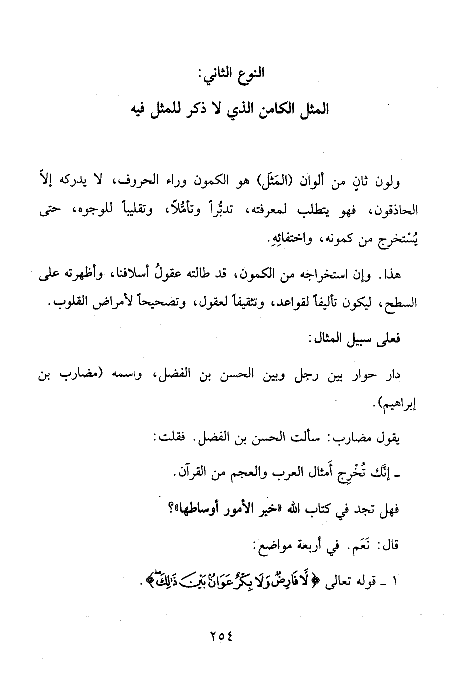 النوع الثاني: المثل الكامن الذي لا ذكر للمثل فيه
