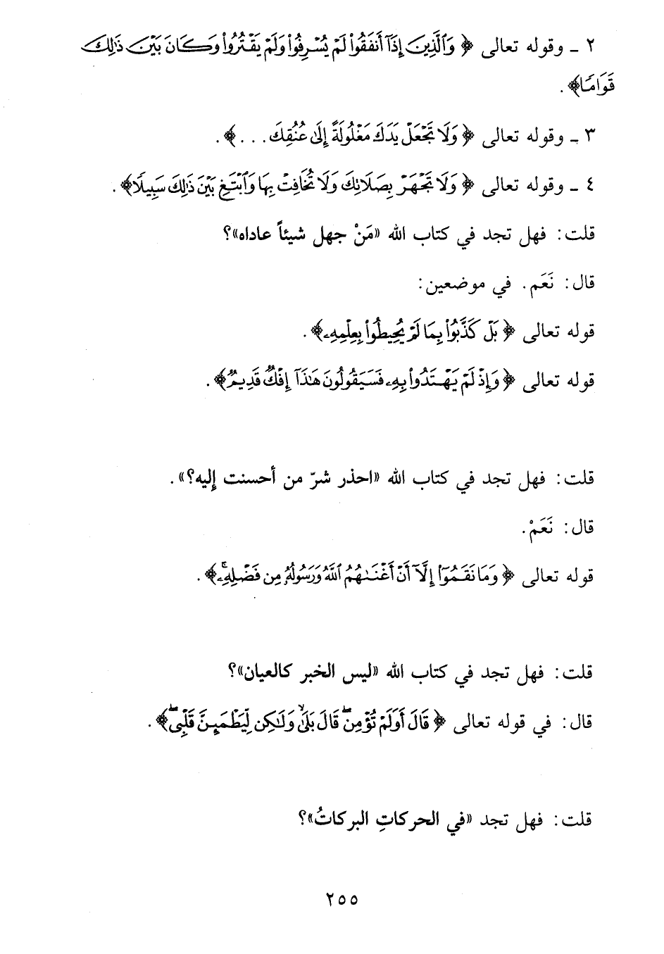 2 - وقوله تعالى وَالَّذِينَ إِذا أَنْفَقُوا لَمْ يُسْرِفُوا وَلَمْ يَقْتُرُوا وَكانَ بَيْنَ ذلِكَ قَواماً.