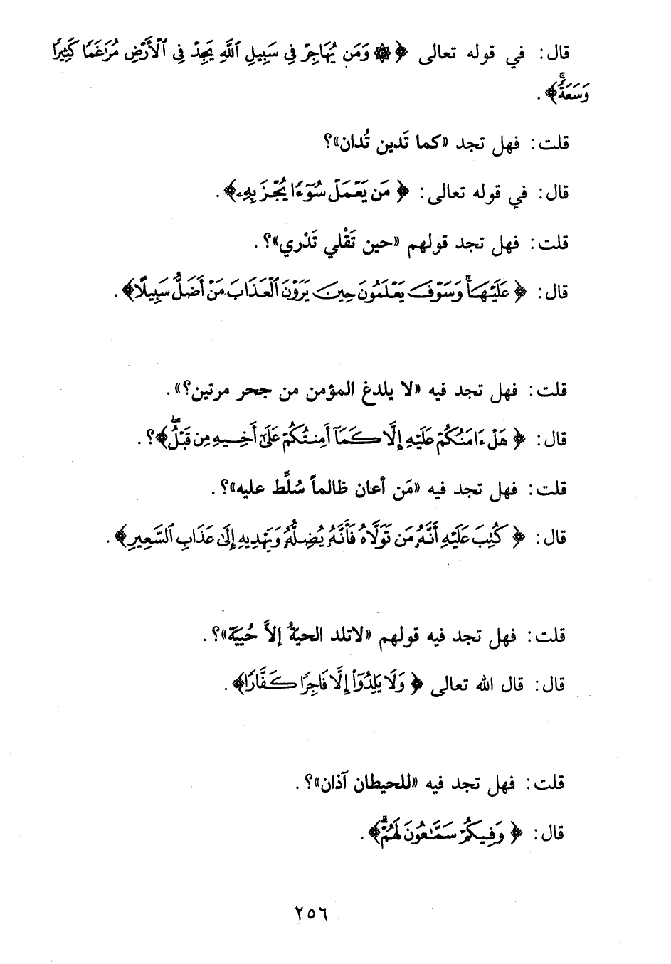 قال: في قوله تعالى* وَمَنْ يُهاجِرْ فِي سَبِيلِ اللَّهِ يَجِدْ فِي الْأَرْضِ مُراغَماً كَثِيراً وَسَعَةً.
