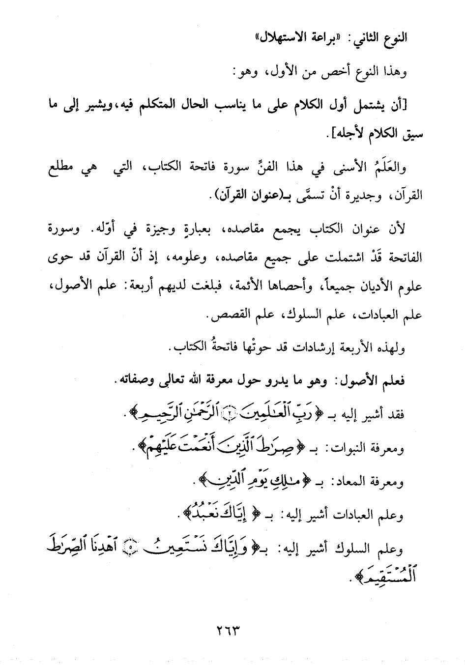 والعلم الأسنى في هذا الفنّ سورة فاتحة الكتاب، التي هي مطلع القرآن، وجديرة أن تسمّى ب (عنوان القرآن).