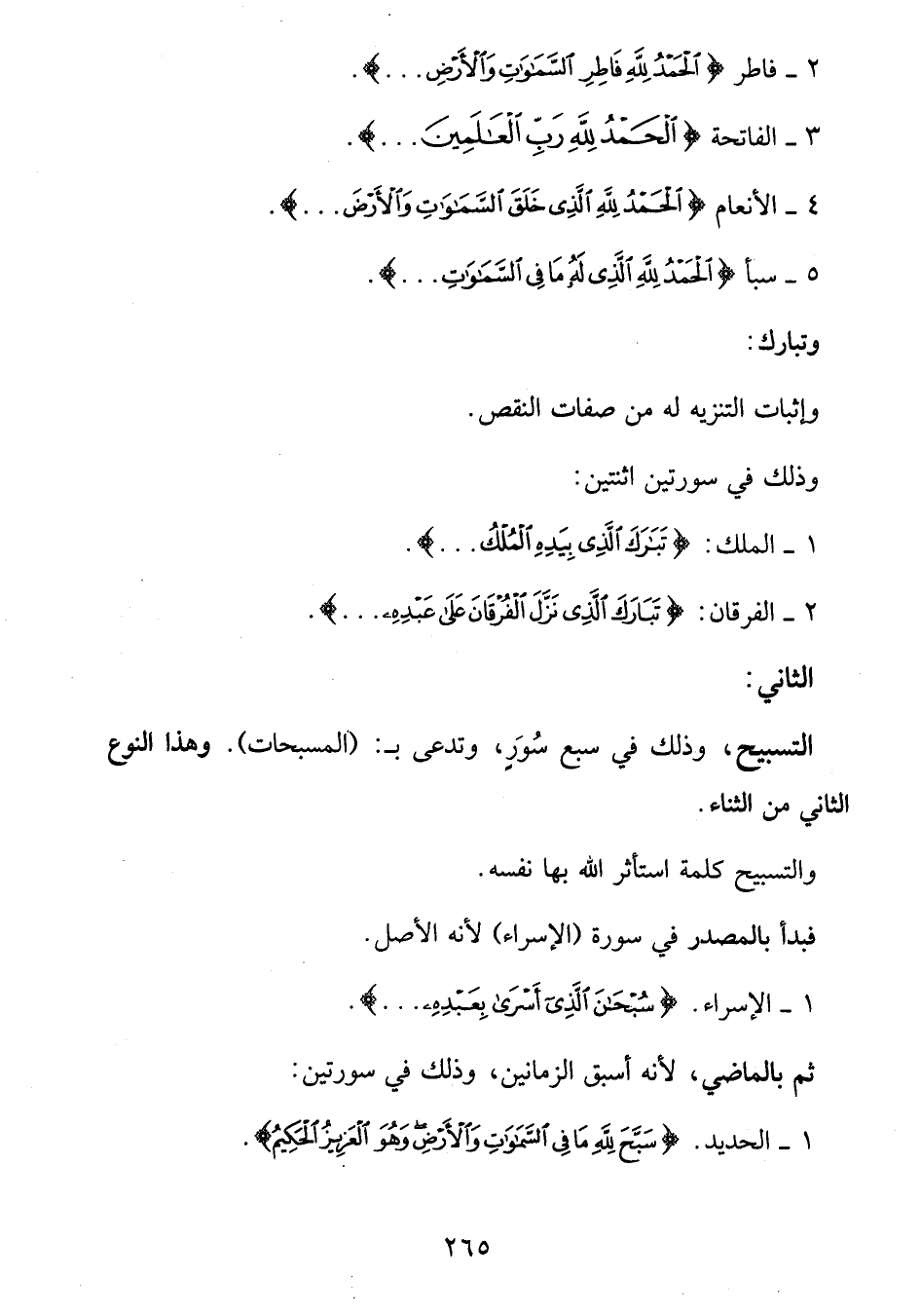 وذلك في سبع سور، وتدعى ب: (المسبحات). وهذا النوع الثاني من الثناء.