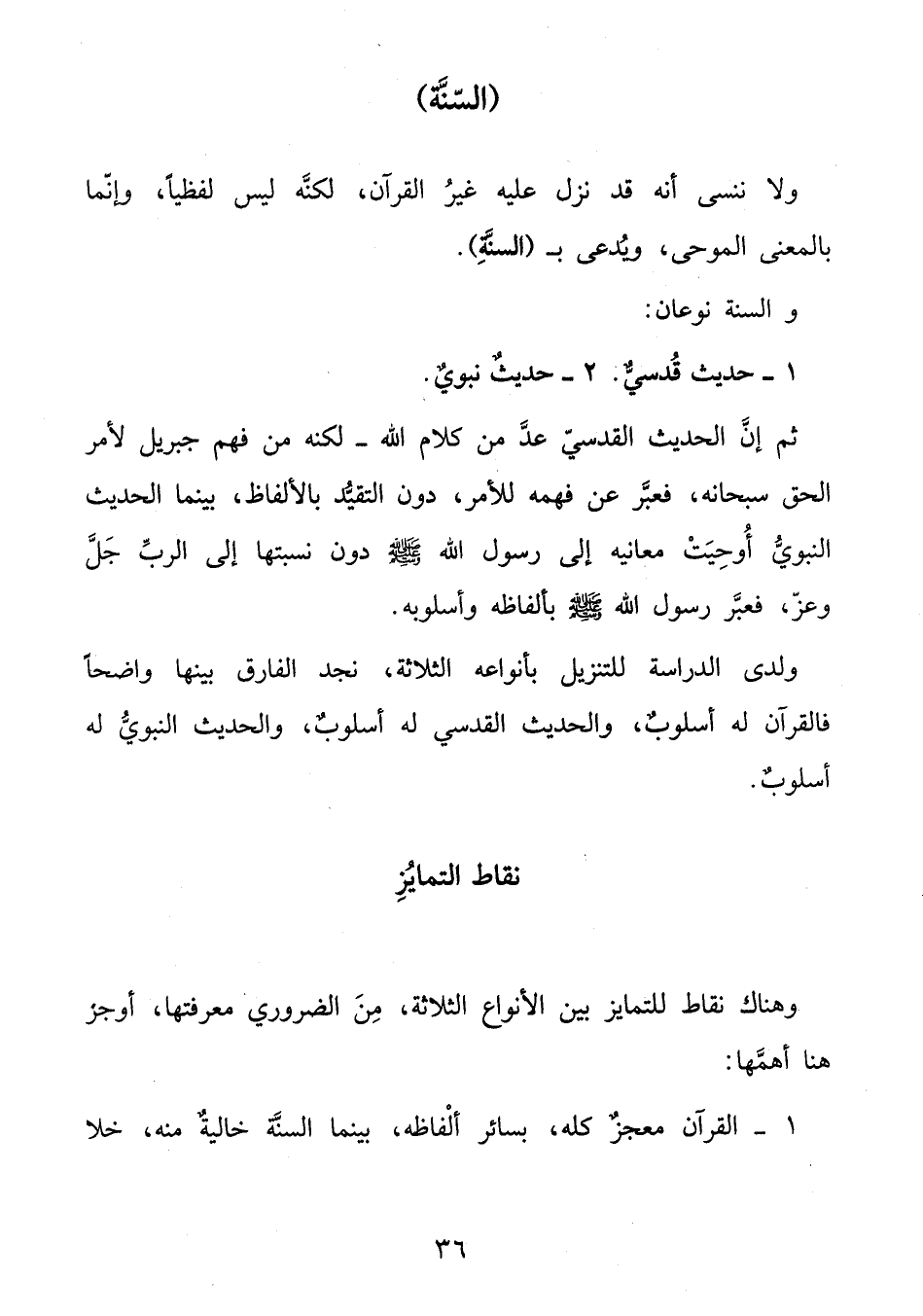 ولدى الدراسة للتنزيل بأنواعه الثلاثة، نجد الفارق بينها واضحا فالقرآن له أسلوب، والحديث القدسي له أسلوب، والحديث النبويّ له أسلوب.