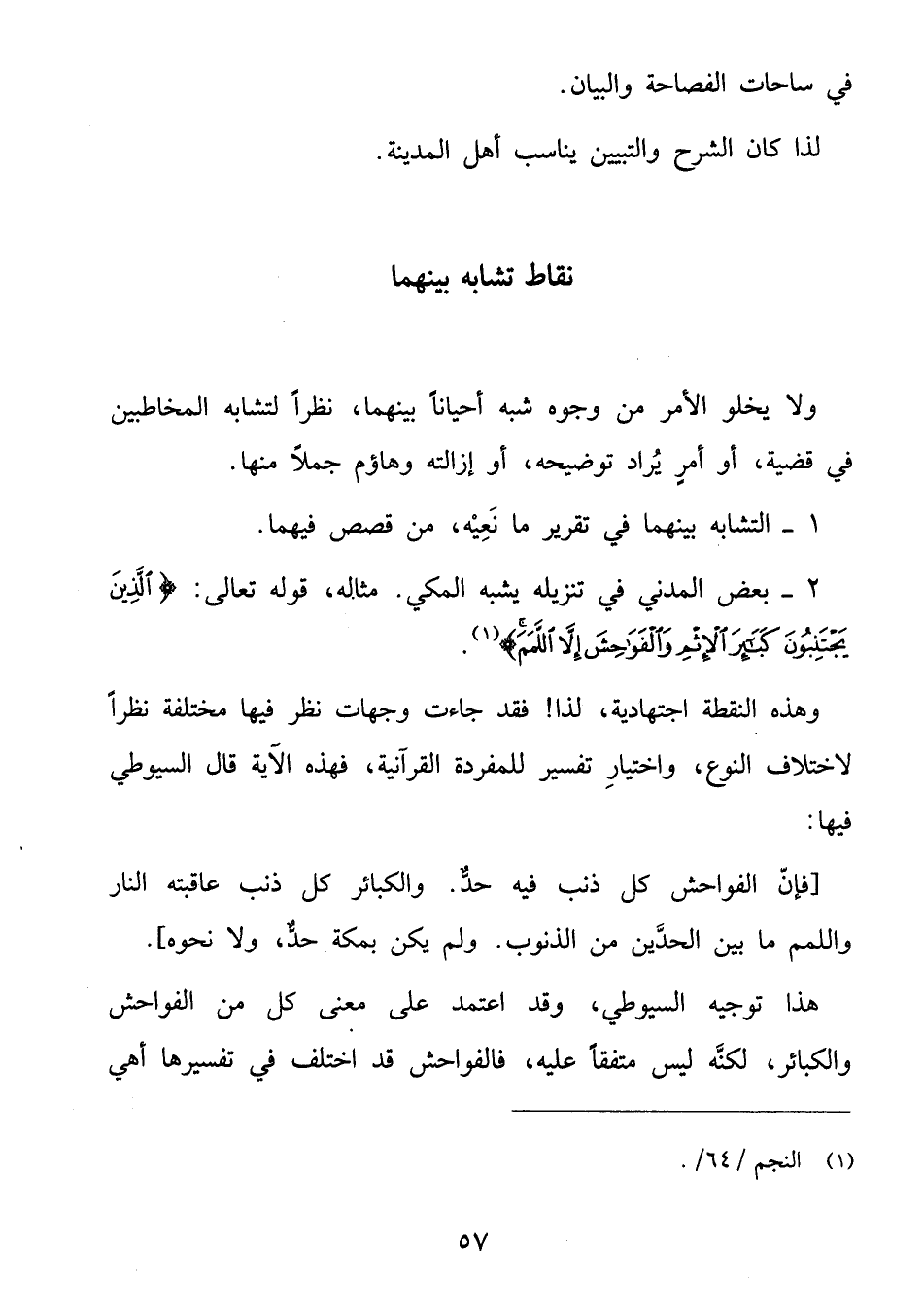 2 - بعض المدني في تنزيله يشبه المكي. مثاله، قوله تعالى: الَّذِينَ يَجْتَنِبُونَ كَبائِرَ الْإِثْمِ وَالْفَواحِشَ إِلَّا اللَّمَمَ (¬1).