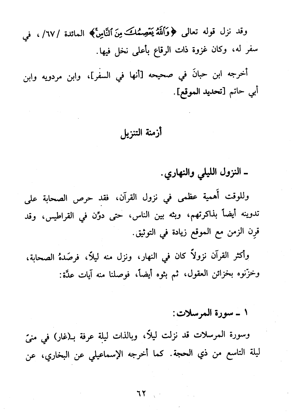 : وسورة المرسلات قد نزلت ليلا، وبالذات ليلة عرفة ب (غار) في منى ليلة التاسع من ذي الحجة. كما أخرجه الإسماعيلي عن البخاري، عن