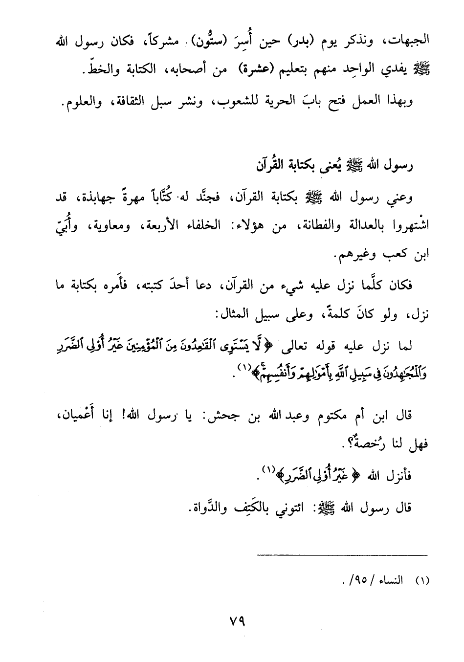 رسول الله صلى الله عليه وسلم يعنى بكتابة القرآن