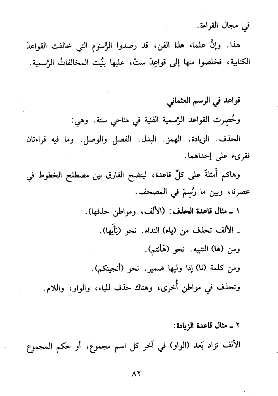 الحذف. الزيادة. الهمز. البدل. الفصل والوصل. وما فيه قراءتان فقرئ على إحداهما.