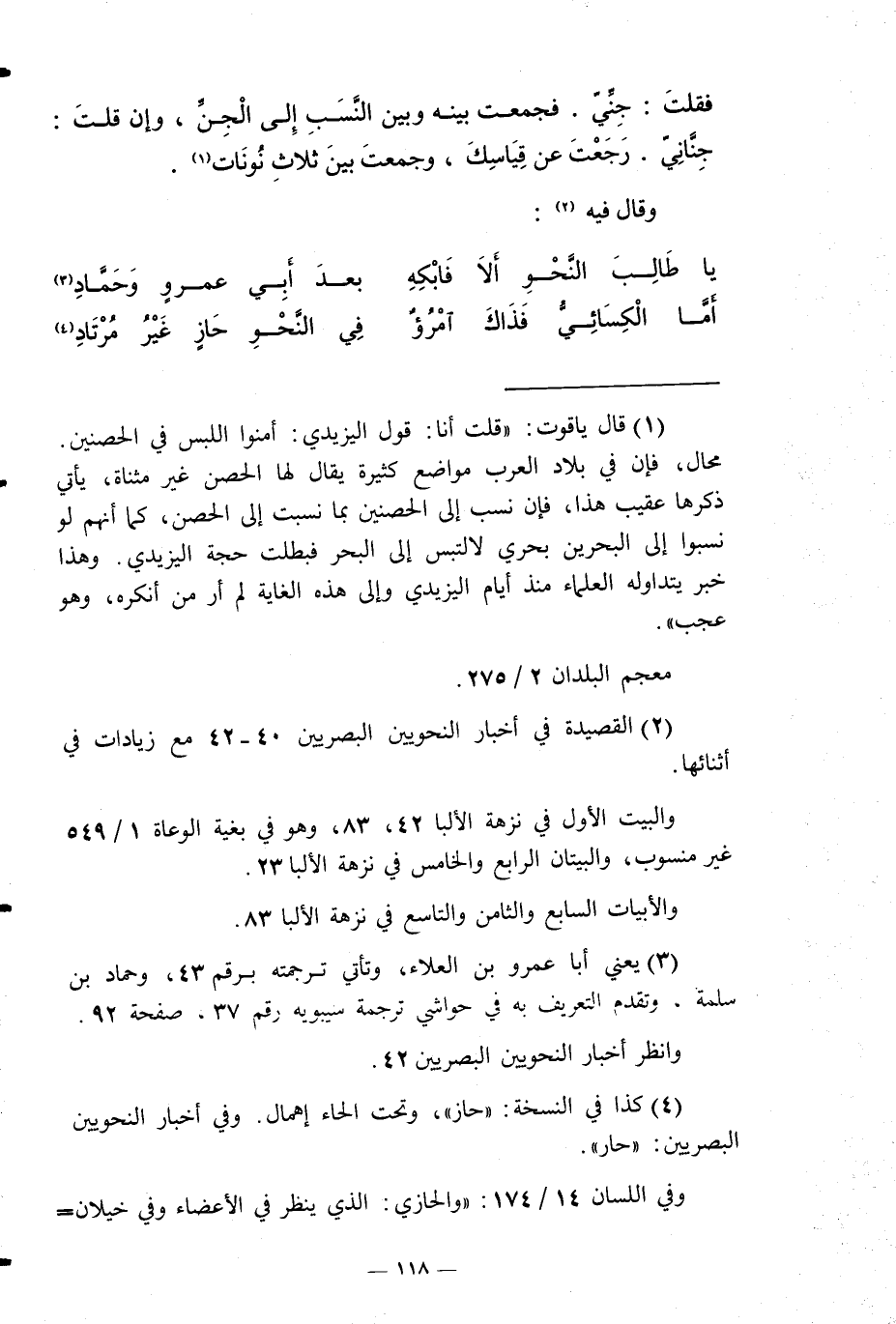 يَا طَالِبَ النَّحْوِ أَلاَ فَاْبكِهِ ... بعدَ أَبِي عمروٍ وَحَمَّادِ