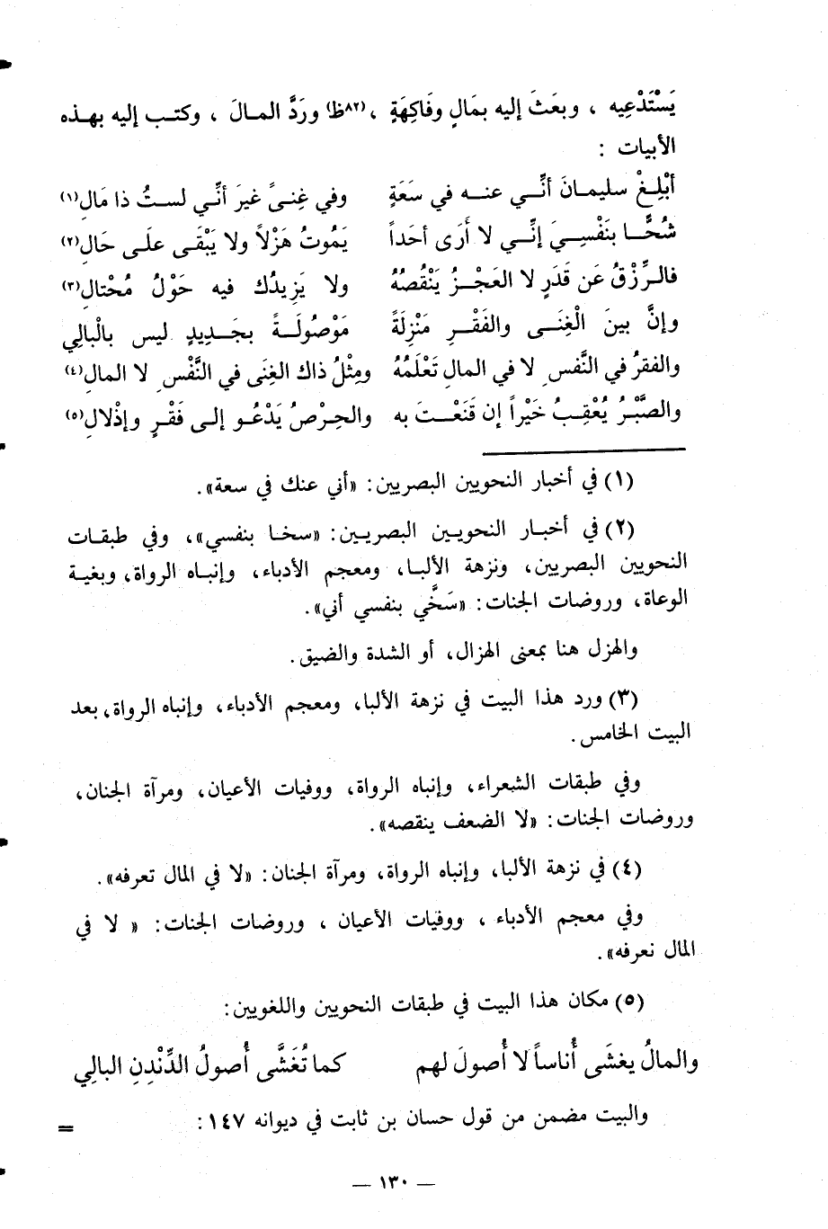 أبْلِغْ سليمانَ أنِّي عَنهُ فِي سَعَةٍ ... وَفِي غِنىً غيرَ أنِّي لستُ ذَا مَال