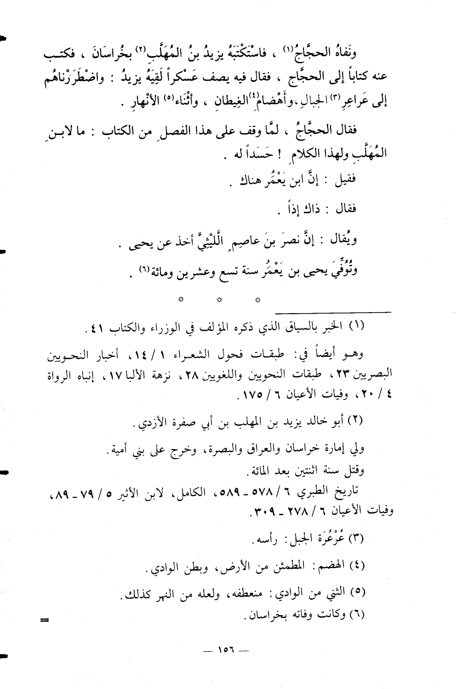 فَقَالَ الْحجَّاج، لما وقف على هَذَا الْفَصْل من الْكتاب: مَا لَا بن الْمُهلب وَلها الْكَلَام! حسداً لَهُ.