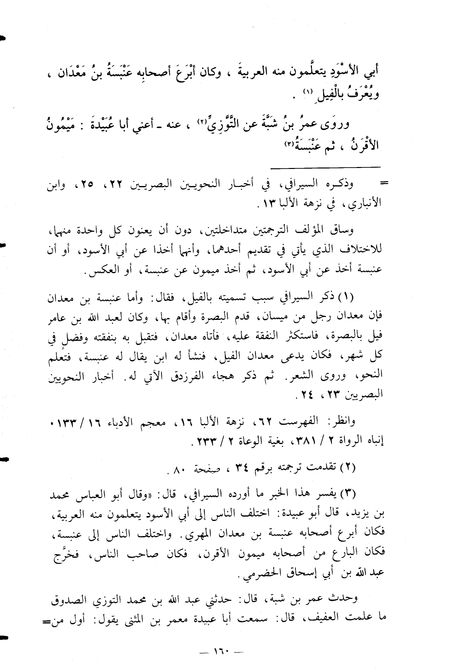 إِلَى أبي الْأسود يتعلمون مِنْهُ الْعَرَبيَّة، وَكَانَ أبرع أَصْحَابه عَنْبَسَة بن معدان، وَيعرف بالفيل.