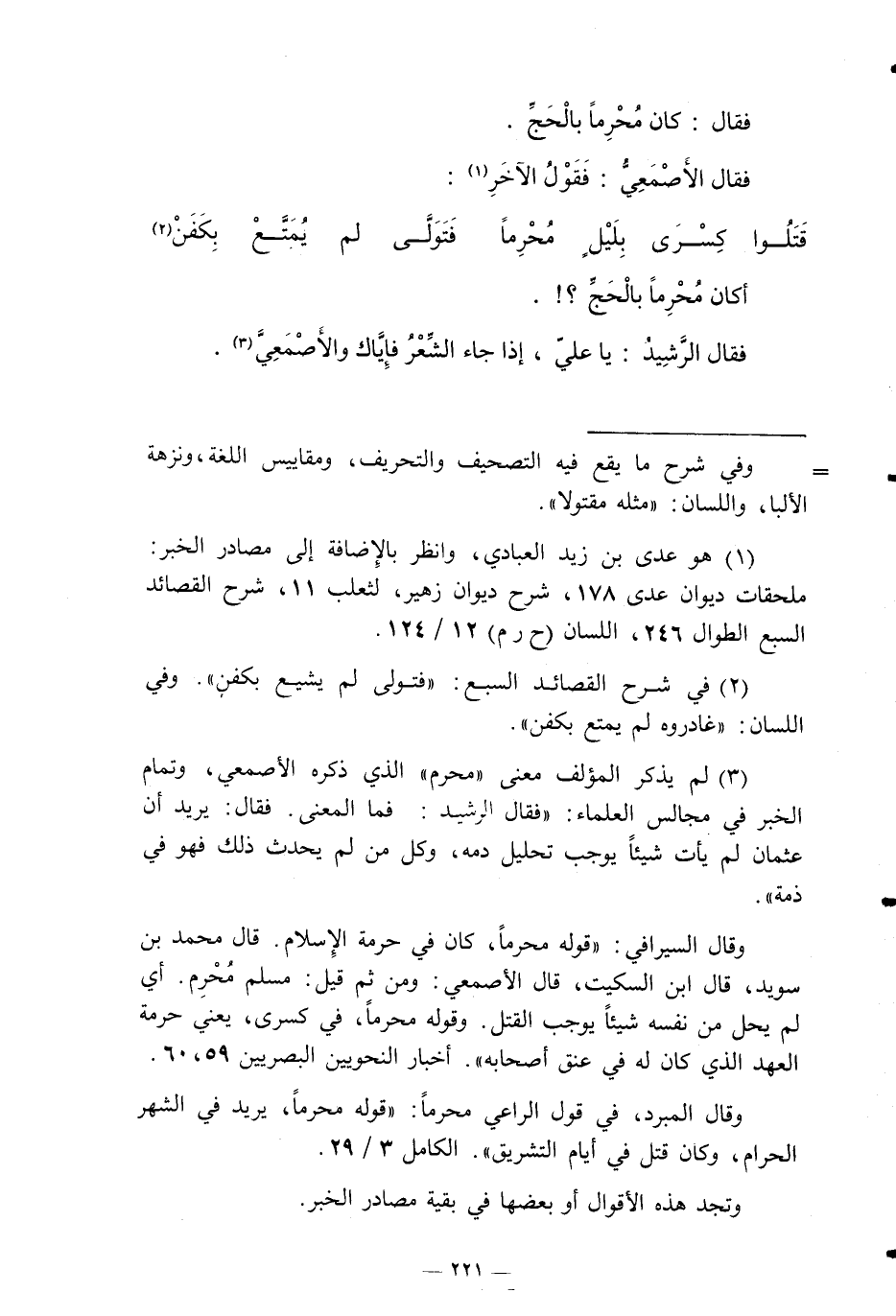 أَكَانَ محرما بِالْحَجِّ؟! فَقَالَ الرشيد: يَا عليّ، إِذا جَاءَ الشّعْر فإياك والأصمعي.