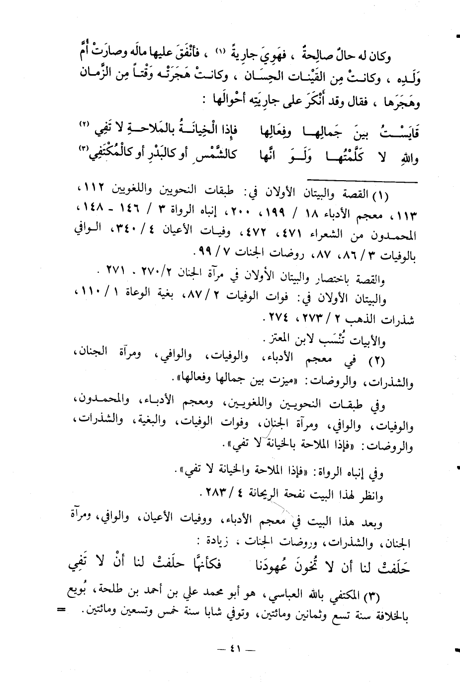 قَايَسْتُ بَين جَمالِها وفِعَالِها ... فَإِذا الْخِيانَةُ بالمَلاحِة لَا تَفِي