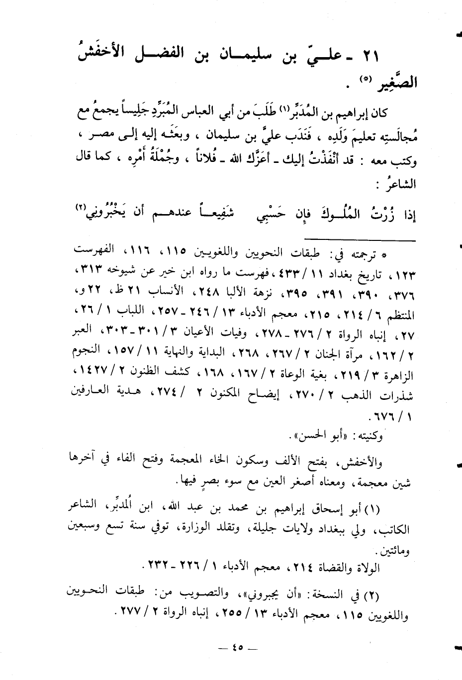 21 - عَليّ بن سُلَيْمَان بن الْفضل الْأَخْفَش الصَّغِير