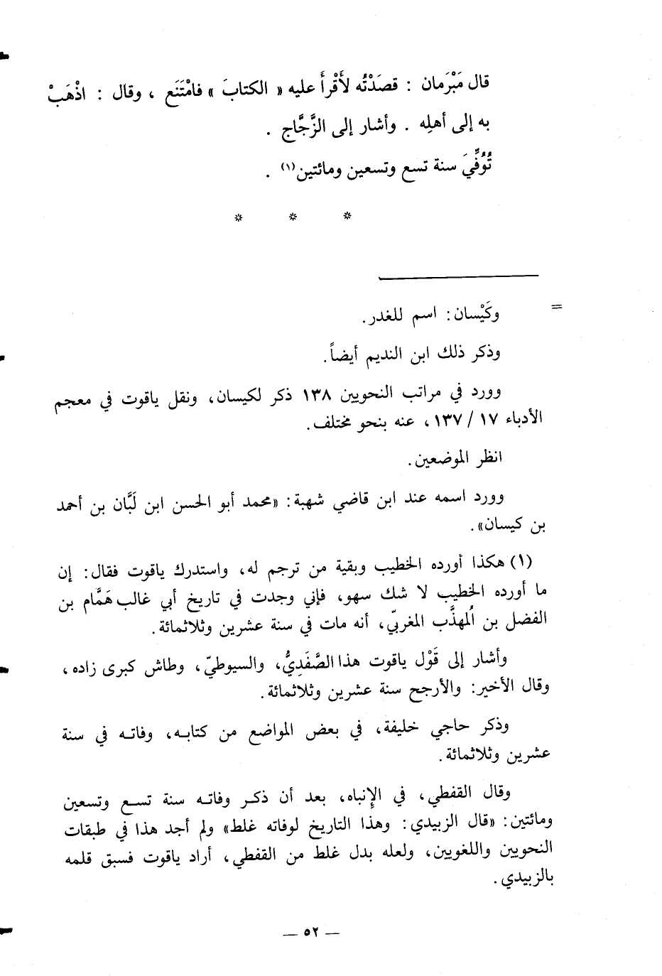 قَالَ مبرمان: قصدته لأقرأ عَلَيْهِ " الْكتاب " فَامْتنعَ، وَقَالَ: اذْهَبْ بِهِ إِلَى أَهله. وَأَشَارَ إِلَى الزَّجَّاج.