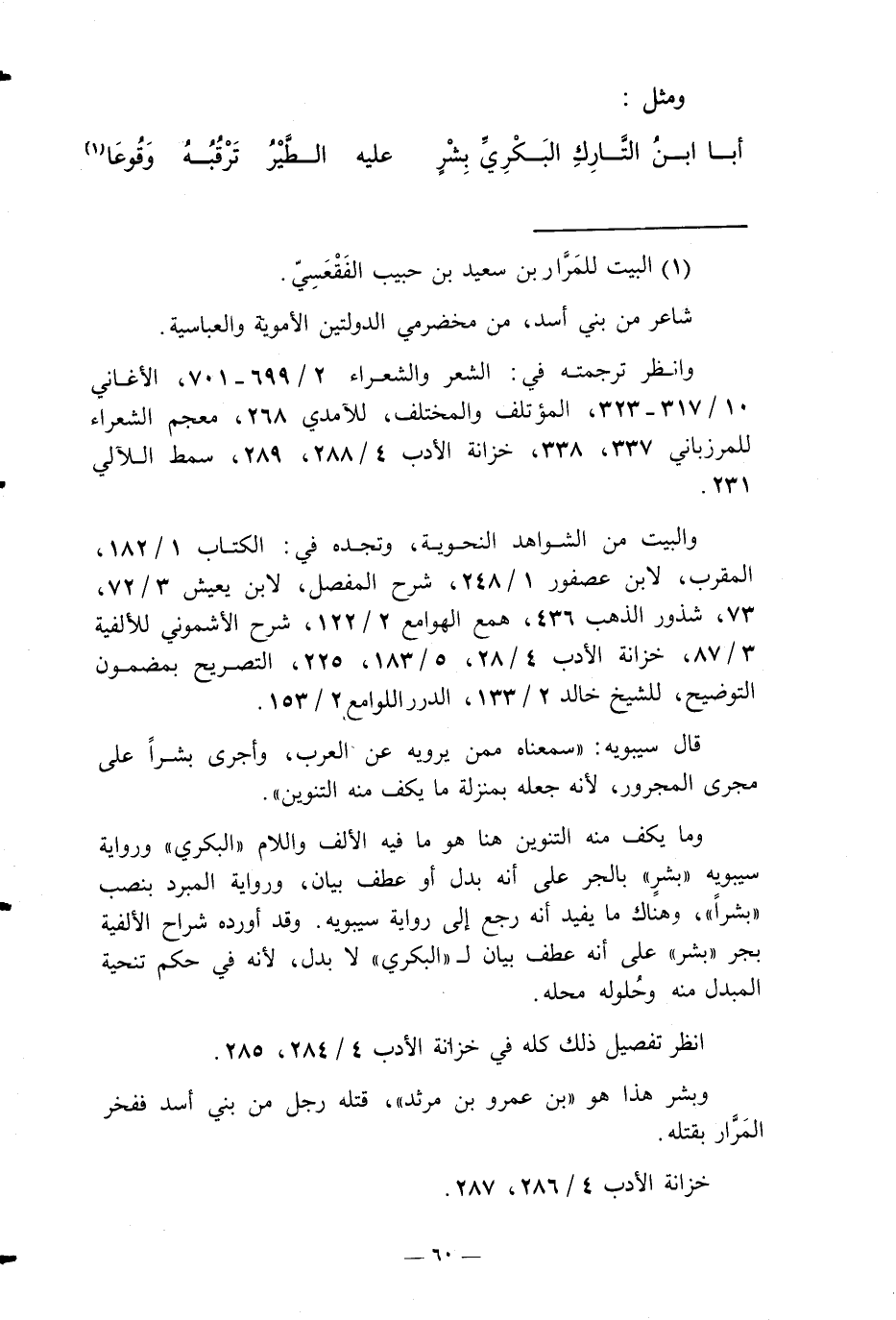 أَبَا ابنُ التَّارِكِ البكْرِيِّ بِشْرٍ ... عَلَيْهِ الطَّيْرُ تَرْقُبُهُ وَقُوعا