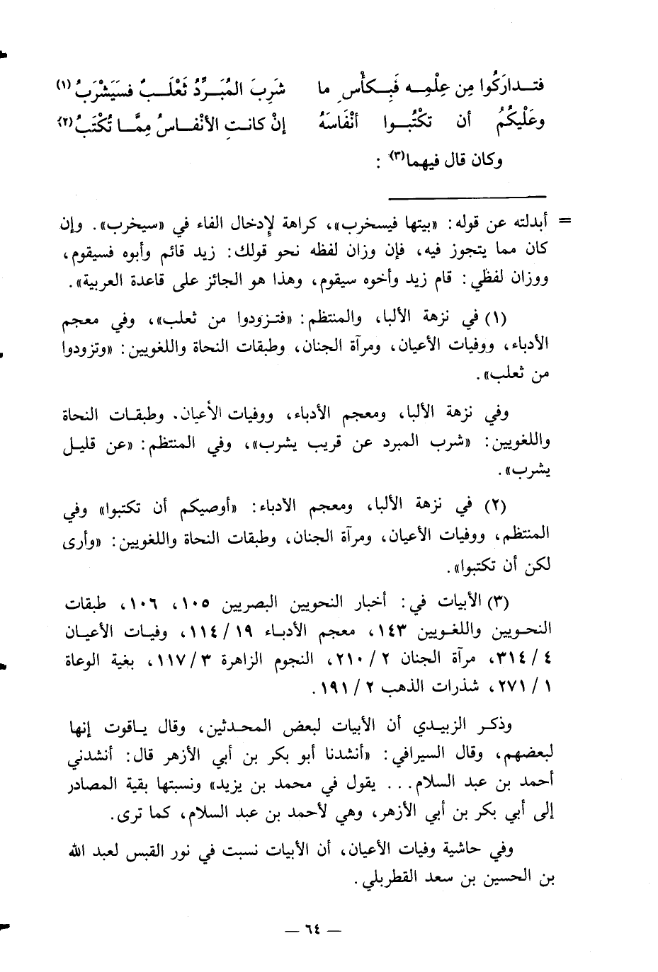 فتدارَكُوا مِن عِلْمِه فَبِكأْسِ مَا ... شَرِبَ المُبَرِّدُ ثَعْلَبُ فسَيَشْربُ
