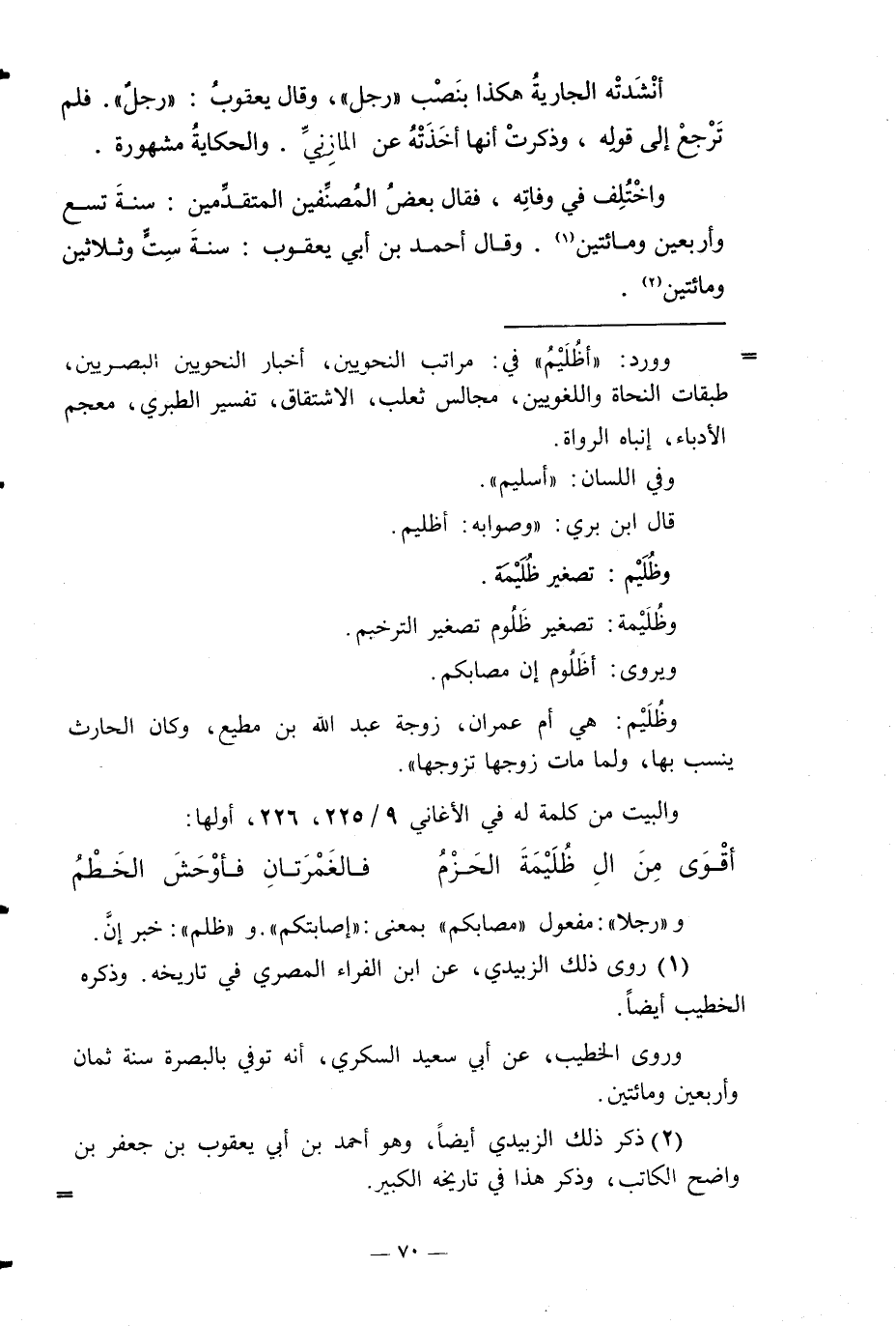أنشدته الْجَارِيَة هَكَذَا بِنصب " رجل "، وَقَالَ يَعْقُوب: " رجلٌ ". فَلم ترجع إِلَى قَوْله، وَذكرت أَنَّهَا أَخَذته عَن المازنيِّ. والحكاية مَشْهُورَة.