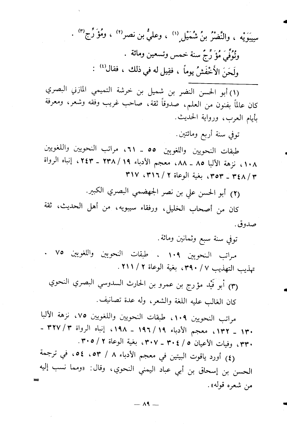 سِيبَوَيْهٍ، وَالنضْر بن شُمَيْل، وَعلي بن نصر، ومؤرج.