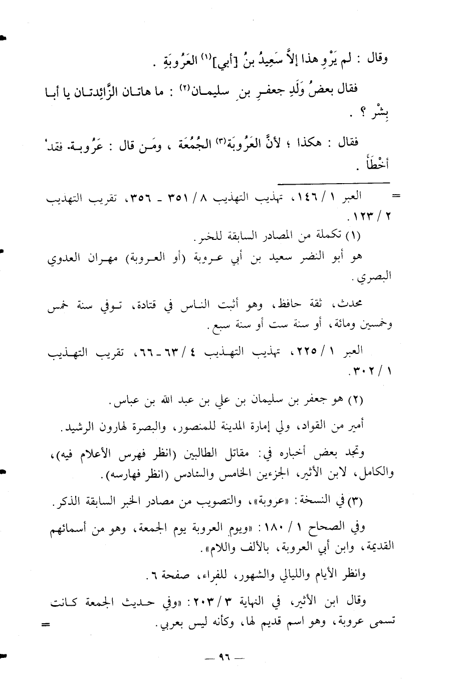 فَقَالَ: هَكَذَا؛ لِأَن العَرُوبة الْجُمُعَة، وَمن قَالَ: عرُوبَة فقد أَخطَأ.