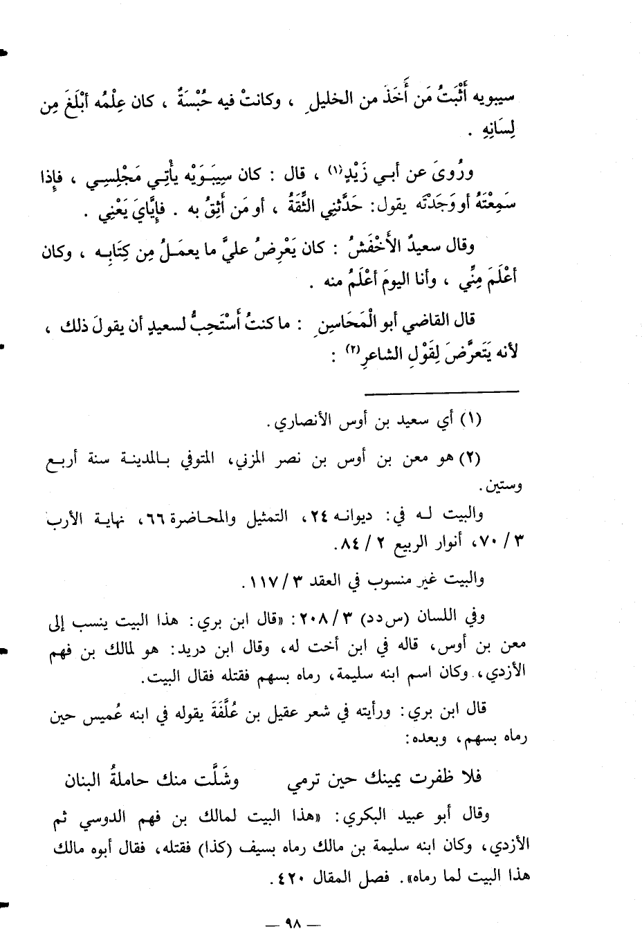 وروى عَن أبي زيد، قَالَ: كَانَ سِيبَوَيْهٍ يَأْتِي مجلسي، فَإِذا سمعته أَو وجدته يَقُول: حَدثنِي الثِّقَة، أَو من أَثِق بِهِ. فإياي يَعْنِي.